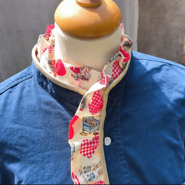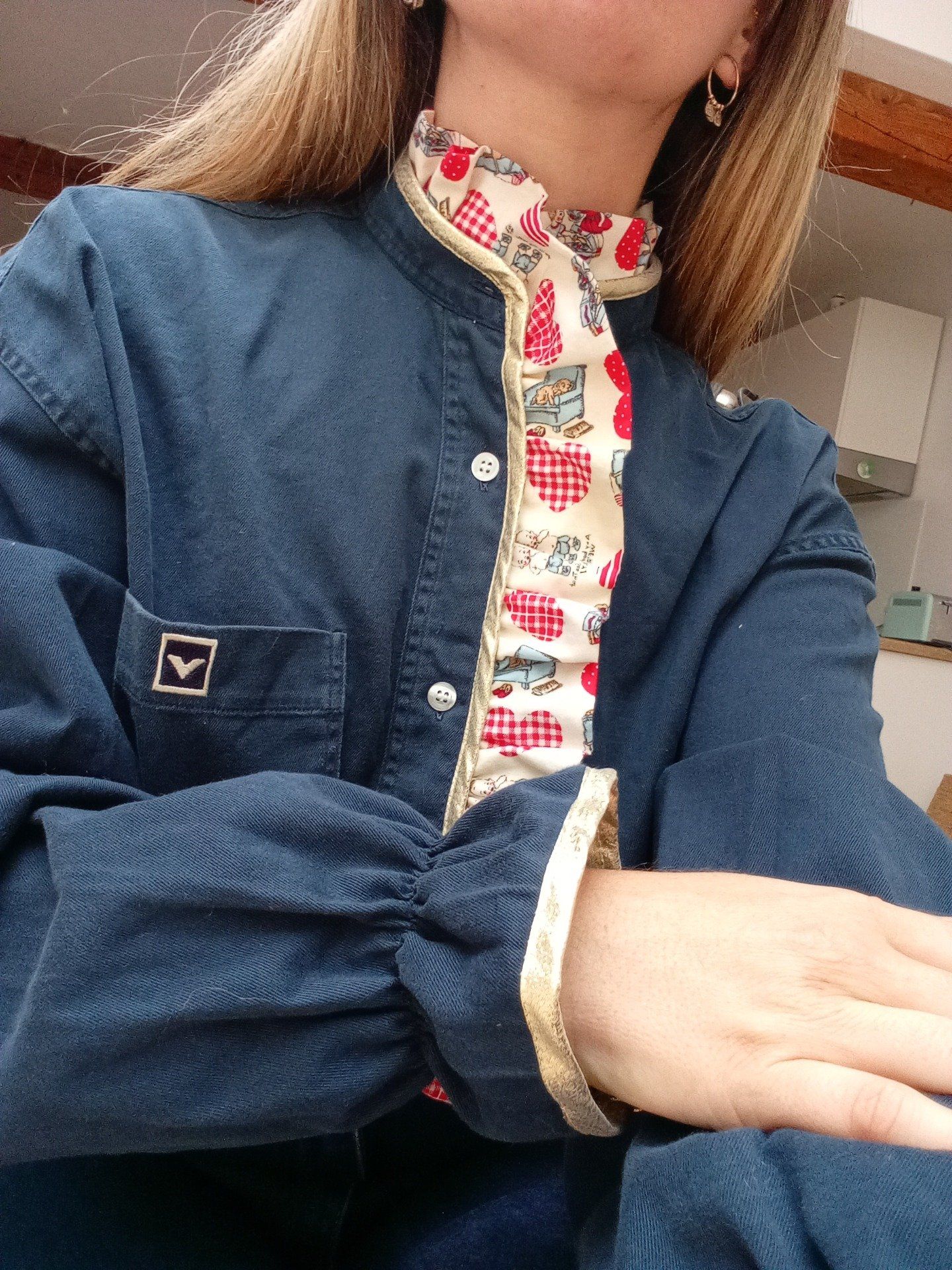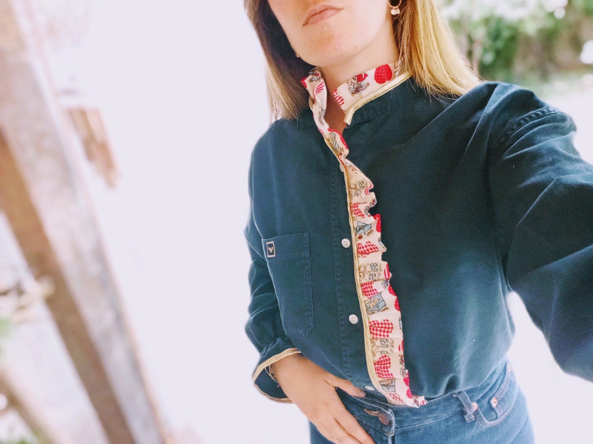 Détails du chemisier : Col orné d'un col victorien / biais soulignant le col et le bas des manches / bas de manches élastiqués